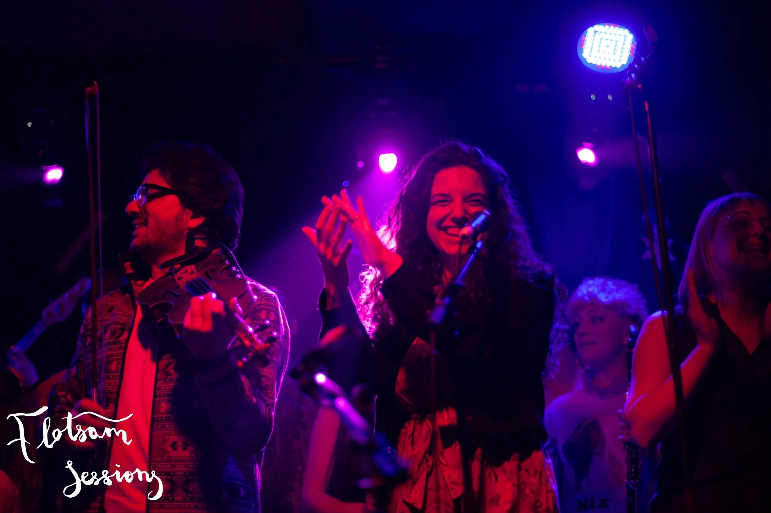 For six intense and wonderful days, Flotsam Sessions brought together 30 outstanding musicians, Londoners with roots in 16 countries (and 5 continents!) from across the globe. They shared, learnt, arranged and rehearsed songs together, with a crazy range of instruments, voices and musical backgrounds. They performed two incredible gigs, in Catfordβs Ninth Life, and a sold out show at The Jago in Dalston, with special guests The Scorpios. And it was fantastic!